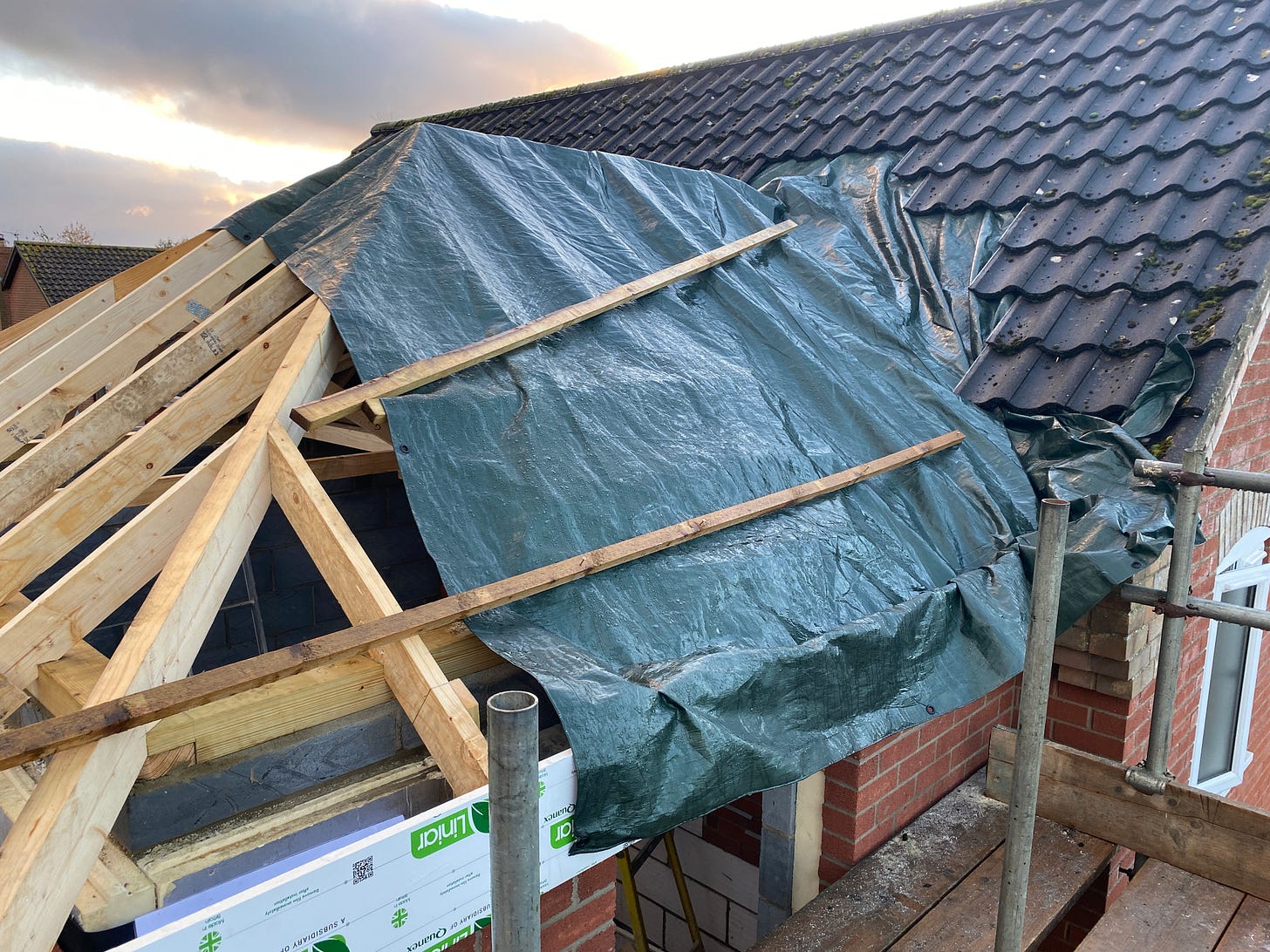 For November, we’ve been extremely lucky with the weather. With the exception of just a couple of light showers, the weather hasn’t delayed any progress on the extension. Plus, with the numerous tarpaulins we seem to have collected over the years, we’ve been able to construct makeshift covers for when there has been a risk of rain.